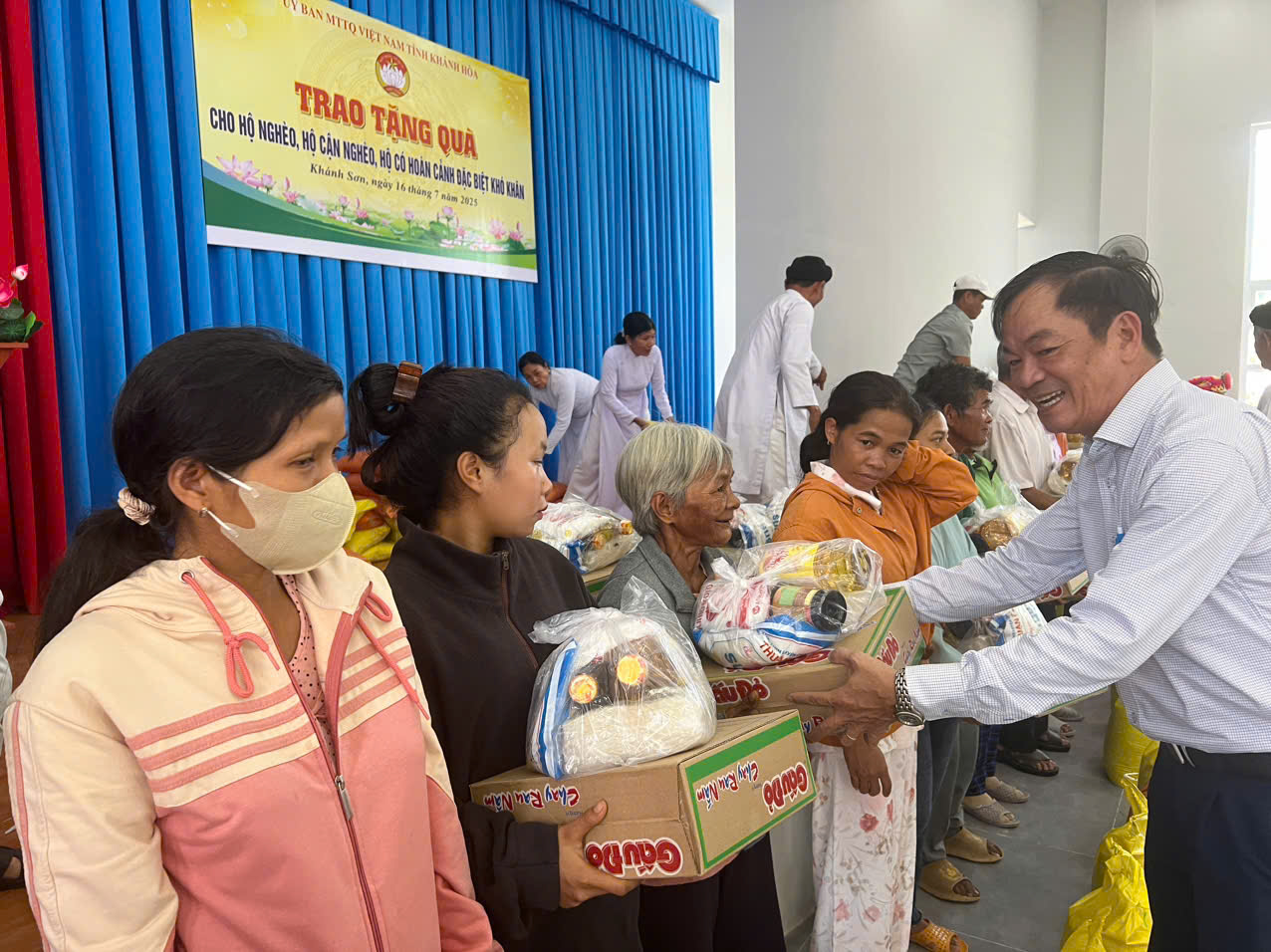 Tại xã Khánh Sơn, ông Nguyễn Văn Thiện -Tỉnh ủy viên, Phó Chủ tịch Ủy ban MTTQ Việt Nam tỉnh và đại diện Hội thánh Cao đài Tòa thánh Tây Ninh, lãnh đạo xã đã trao 70 suất quà cho bà con; đồng thời thăm hỏi, động viên bà con nỗ lực, phấn đấu vươn lên trong cuộc sống.