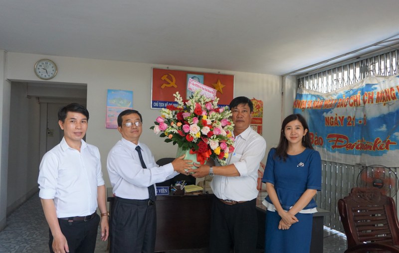 Ông Cao Ngọc Tâm (thứ 2, bên trái sang) thăm và chúc mừng Báo Đại đoàn kết