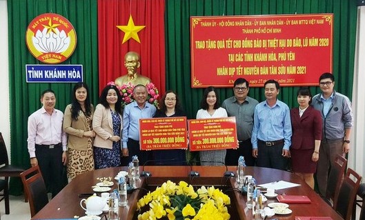 Chiều 27-1, Ủy ban Mặt trận Tổ quốc (MTTQ) Việt Nam tỉnh Khánh Hòa đã tiếp nhận 300 triệu đồng từ Thành ủy, HĐND, UBND, Ủy ban MTTQ Việt Nam thành phố Hồ Chí Minh ủng hộ cho Quỹ Cứu trợ tỉnh.