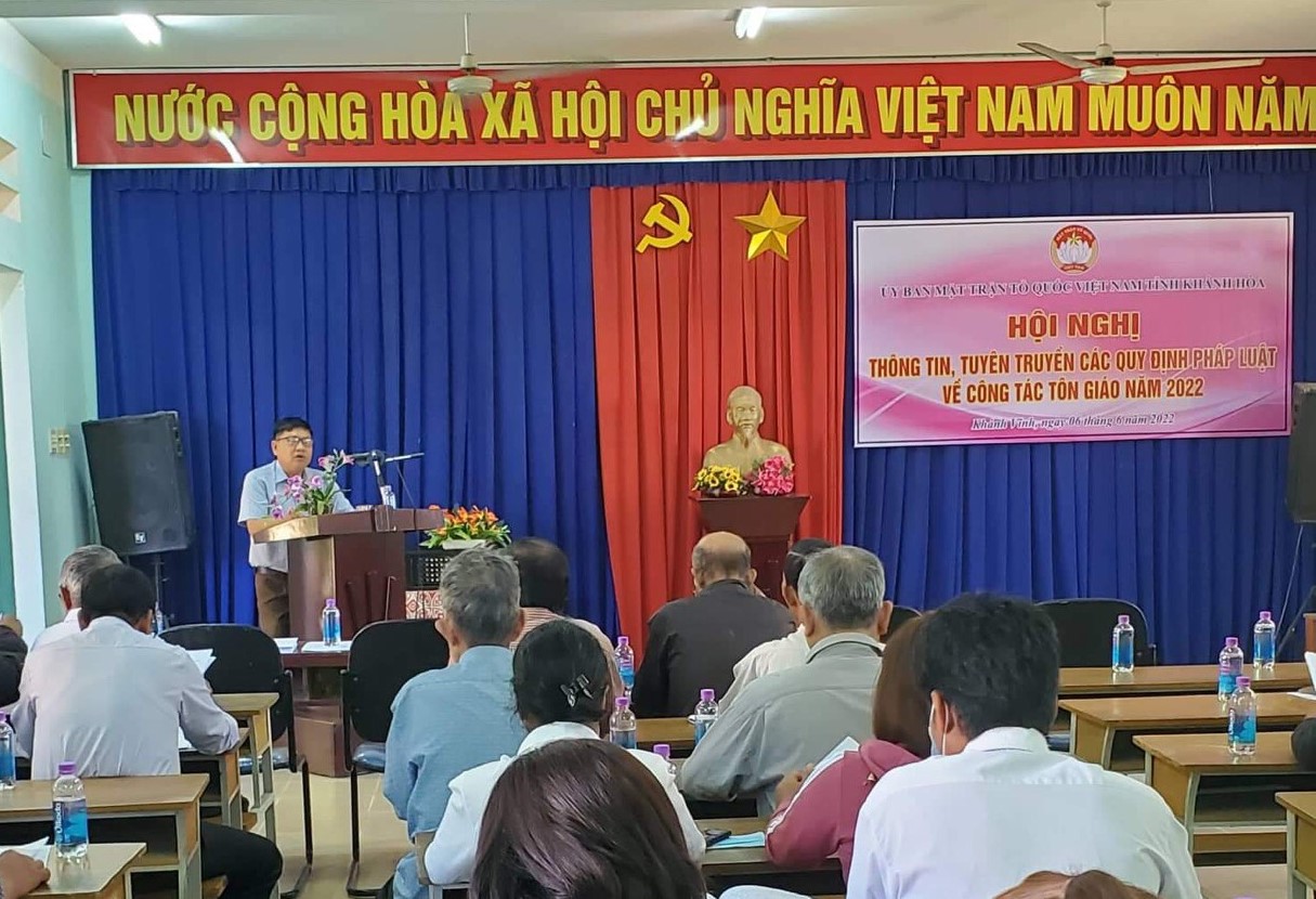 Trong 2 ngày 03 và 06/10/2021, Ủy ban MTTQ Việt Nam tỉnh Khánh Hòa tổ chức Hội nghị thông tin, tuyên truyền chính sách, quy định pháp luật về công tác tôn giáo cho cán bộ mặt trận, cốt cán tôn giáo các xã, thị trấn của 2 huyện Khánh Sơn và Khánh Vĩnh.