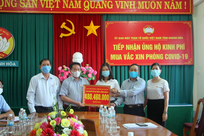 Chiều 29/6, Ủy ban MTTQ Việt Nam tỉnh Khánh Hòa đã tiếp nhận hơn 820 triệu đồng ủng hộ mua vắc xin phòng Covid-19 từ các đơn vị, doanh nghiệp, mạnh thường quân trên địa bàn tỉnh.