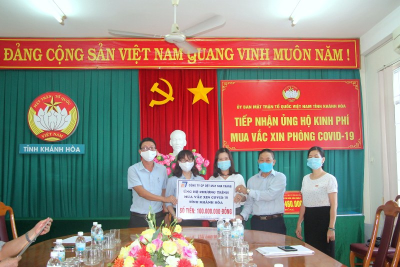 Tại buổi tiếp nhận, bà Huỳnh Thị Phượng - Phó Chủ tịch Ủy ban MTTQ Việt Nam tỉnh đã cảm ơn sự chia sẻ, hỗ trợ của cán bộ, nhân viên, người lao động của các đơn vị, doanh nghiệp và các mạnh thường quân gồm: Hội Cựu chiến binh tỉnh: 480,46 triệu đồng; Trường Đại học Nha Trang:150 triệu đồng; Công ty Cổ phần Dệt may Nha Trang: 100 triệu đồng; gia đình bà Đỗ Thị Bê và một số Việt kiều tại Pháp: 50 triệu đồng; Công ty TNHH Tự động hóa MenT: 25 triệu đồng; Công ty TNHH Mentech: 15 triệu đồng.