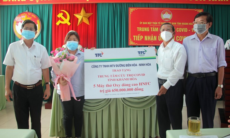 Ông Trần Ngọc Thanh (thứ 2 bên phải sang) tiếp hỗ trợ công tác phòng, chống dịch Covid-19