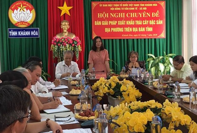 Ngày 2/7, Hội đồng tư vấn Kinh tế - xã hội, Ủy ban MTTQ Việt Nam tỉnh Khánh Hòa tổ chức tọa đàm “Bàn về xuất khẩu ba loại quả sầu riêng, xoài úc và bưởi da xanh trên địa bàn tỉnh Khánh Hòa - Thực trạng và giải pháp”. Tham dự có đại diện Ban Thường trực Ủy ban MTTQ Việt Nam tỉnh; thành viên Hội đồng tư vấn Kinh tế - xã hội; lãnh đạo một số đơn vị, sở, ngành, địa phương, doanh nghiệp liên quan.