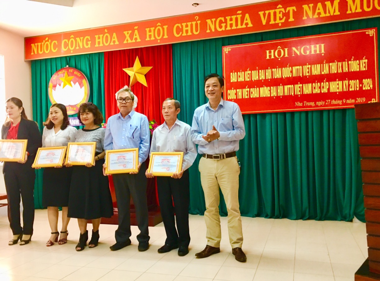 Sáng 27/9/2019 tại thành phố Nha Trang, UBMTTQ Việt Nam tỉnh Khánh Hòa đã tổ chức Tổng kết Cuộc thi viết chào mừng Đại hội đại biểu MTTQ Việt Nam các cấp và Đại hội đại biểu MTTQ Việt Nam tỉnh lần thứ X, tiến tới Đại hội đại biểu toàn quốc MTTQ Việt Nam lần thứ IX với chủ đề "Phát huy tinh thần đoàn kết, sáng tạo. Kết nối nhịp cầu ý Đảng, lòng dân”(sau đây gọi tắt là Cuộc thi).