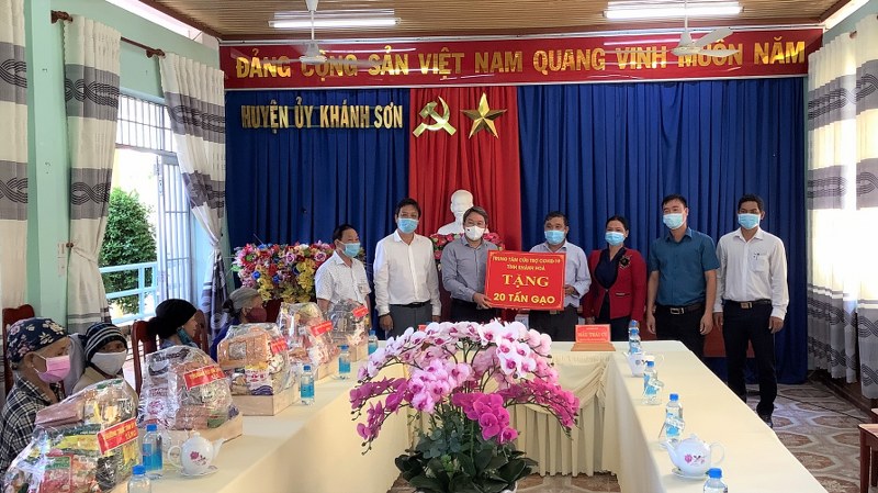 Nhân dịp này, đồng chí Nguyễn Hải Ninh, Bí thư Tỉnh ủy đã thăm và tặng quà cho 05 đồng chí già làng tiêu biểu và 05 hộ gia đình khó khăn do ảnh hưởng của dịch bệnh Covid-19. Đồng thời, đại diện cho Ban vận động quỹ cứu trợ tỉnh, đồng chí Huỳnh Mộng Giang - Phó chủ tịch Ủy ban MTTQVN tỉnh Khánh Hòa đã trao tặng 20 tấn gạo cho Ban Cứu trợ Covid-19 của huyện, để hỗ trợ cho các hộ nghèo, hộ cận nghèo và các gia đình gặp khó khăn do đại dịch Covid-19 trên địa bàn huyện.