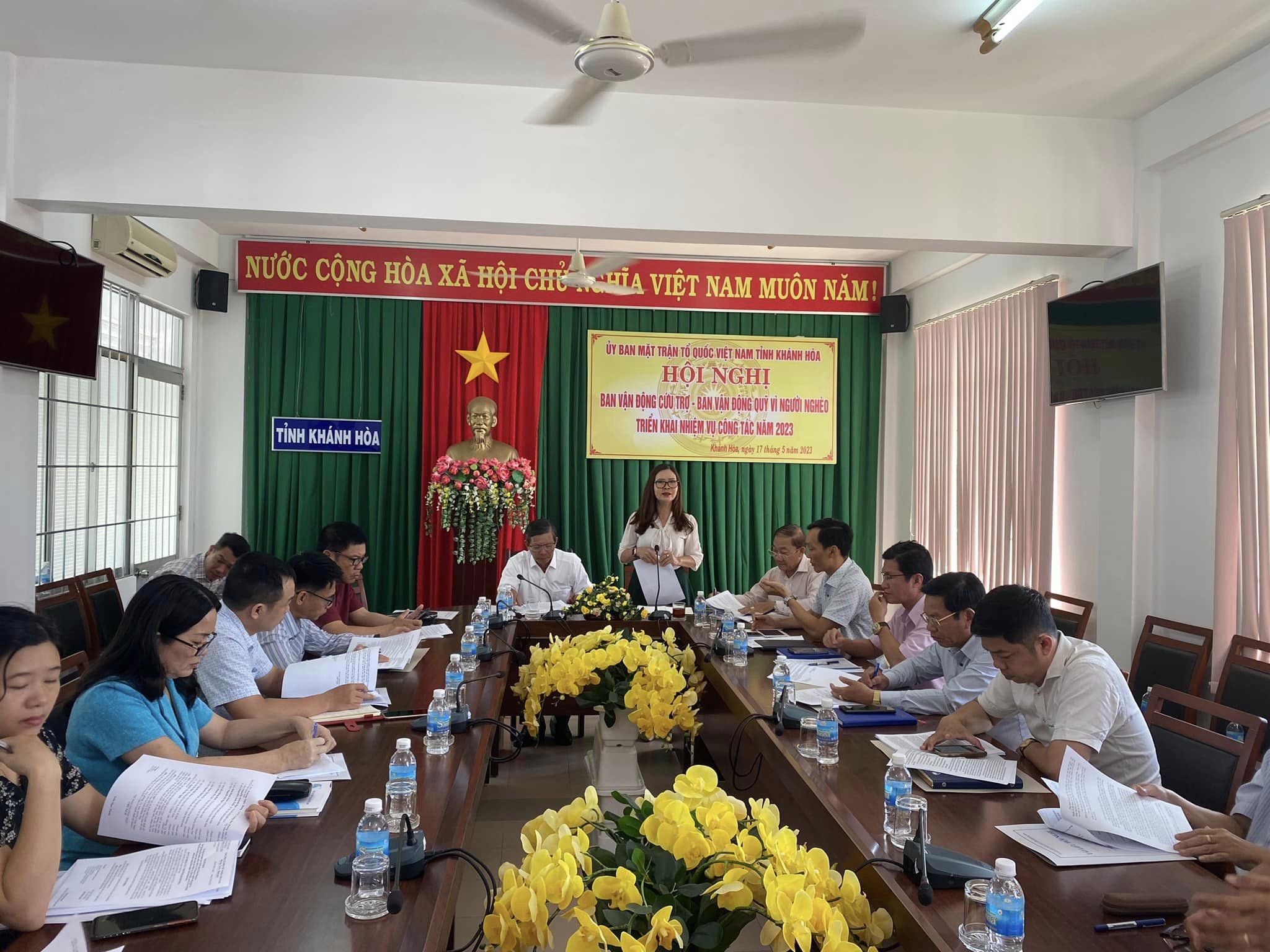 Sáng 17-5, ông Trần Ngọc Thanh - Chủ tịch UBMTTQ Việt Nam tỉnh Khánh Hòa chủ trì Hội nghị Ban vận động Quỹ cứu trợ - Ban vận động Quỹ vì người nghèo và triển khai nhiệm vụ năm 2023.