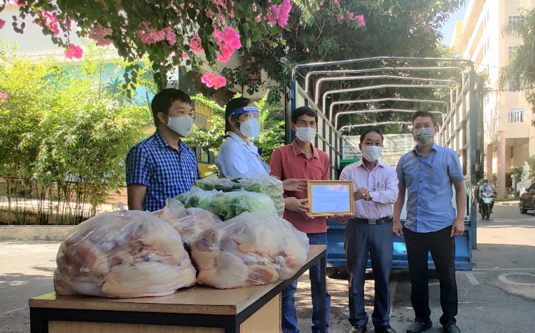 Sáng ngày 23/8, Đại diện Trung tâm cứu trợ Covid-19 tỉnh tiếp nhận hơn 300kg thịt gà và 100kg rau, củ các loại của Công ty TNHH Dịch vụ Sản xuất Minh Vũ Nha Trang.