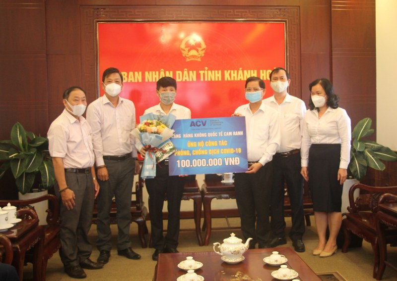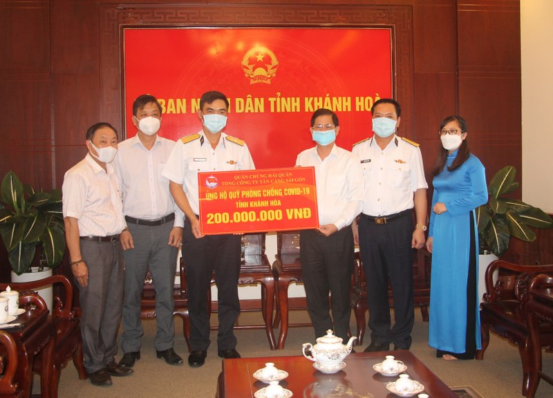 Sáng 5/10, Trung tâm Cứu trợ Covid-19 tỉnh Khánh Hòa tiếp nhận 300 triệu đồng ủng hộ cho công tác phòng, chống dịch Covid-19 của tỉnh từ 2 đơn vị: Cảng Quốc tế Cam Ranh thuộc Tổng công ty Tân Cảng Sài Gòn (ủng hộ 200 triệu đồng); Cảng Hàng không Quốc tế Cam Ranh (ủng hộ 100 triệu đồng).