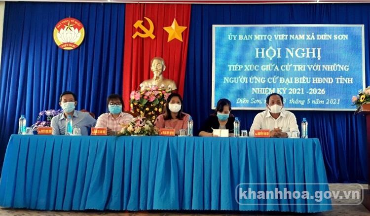 Các ứng cử viên đại biểu HĐND tỉnh thuộc Đơn vị bầu cử số 10 gồm các vị: Nguyễn Văn Ghi - Ủy viên Ban Thường vụ Tỉnh ủy, Chủ nhiệm Ủy ban Kiểm tra Tỉnh ủy; Phan Lê Khánh Hằng - Phó Chánh Văn phòng Hội Văn học - Nghệ thuật tỉnh; Phạm Thúy Quỳnh - Phó Trưởng Ban Văn hóa - Xã hội HĐND tỉnh; Mang Thị Ánh Trúc - bác sĩ, Phó Trưởng khoa, phụ trách Khoa Truyền nhiễm HIV/AIDS, Bệnh viện Bệnh Nhiệt đới tỉnh; Nguyễn Trọng Trung - Chủ tịch Hội Nông dân tỉnh tiếp xúc cử tri của xã Diên Sơn và xã Diên Hòa (huyện Diên Khánh).