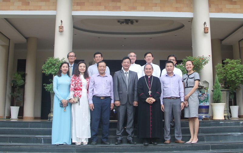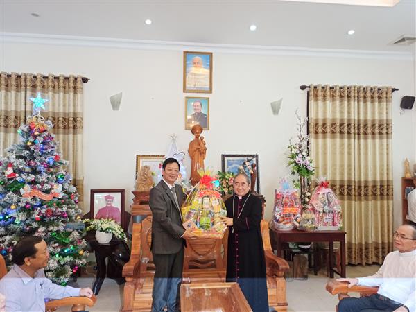 Đồng chí Huỳnh Mộng Giang, Phó Chủ tịch Ủy ban MTTQ tỉnh thăm hỏi Giám mục Võ Đức Minh, Tòa giám mục giáo phận Nha Trang