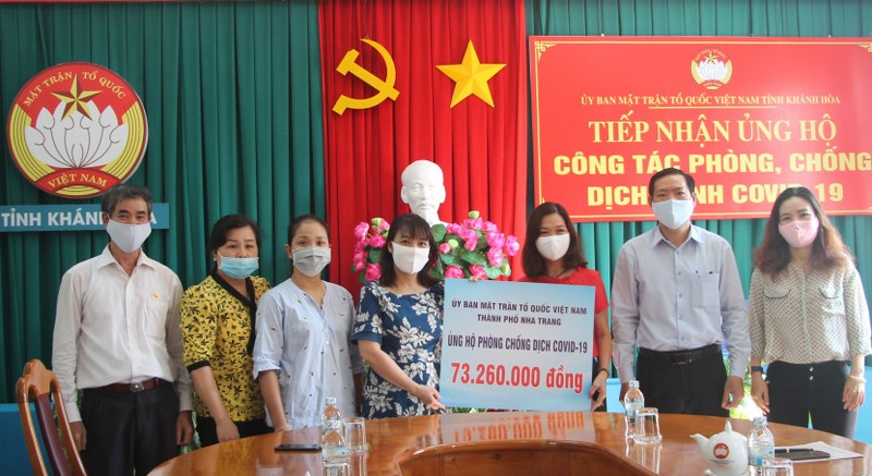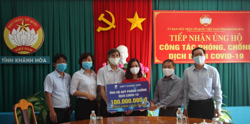 Sáng 16-4-2020, Ủy ban Mặt trận Tổ quốc (MTTQ) Việt Nam tỉnh Khánh Hòa đã tiếp nhận hơn 294 triệu đồng ủng hộ cho công tác phòng, chống dịch Covid-19 (đợt 2) từ 5 đơn vị, doanh nghiệp trên địa bàn tỉnh, gồm: Viễn thông Khánh Hòa (ủng hộ 100 triệu đồng), Hội Cựu chiến binh TP. Nha Trang (90 triệu đồng), Ủy ban MTTQ Việt Nam TP. Nha Trang (73,26 triệu đồng), Công ty Cổ phần Thủy sản 584 Nha Trang (20 triệu đồng), Chùa Lâm Tỳ Ni (11 triệu đồng).