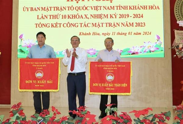 Nhân dịp này, UBMTTQ Việt Nam tỉnh tặng Cờ xuất sắc toàn diện cho UBMTTQ Việt Nam huyện Diên Khánh; tặng Cờ xuất sắc cho UBMTTQ Việt Nam thị xã Ninh Hòa; tặng bằng khen cho 31 tập thể và 18 cá nhân có thành tích xuất sắc trong công tác Mặt trận năm 2023. Công ty TNHH Tâm Hương ủng hộ Quỹ “Vì người nghèo” tỉnh 200 triệu đồng./.
