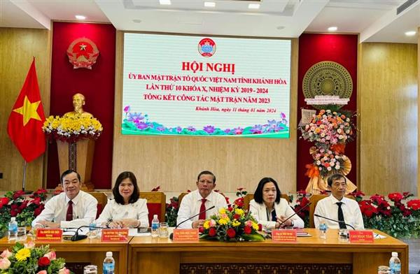 Sáng 11-1, ông Trần Ngọc Thanh - Chủ tịch UBMTTQ Việt Nam tỉnh Khánh Hòa chủ trì hội nghị tổng kết công tác Mặt trận năm 2023. Bà Phạm Thị Xuân Trang - Phó Chủ tịch HĐND tỉnh; ông Đinh Văn Thiệu - Phó Chủ tịch UBND tỉnh đến dự.