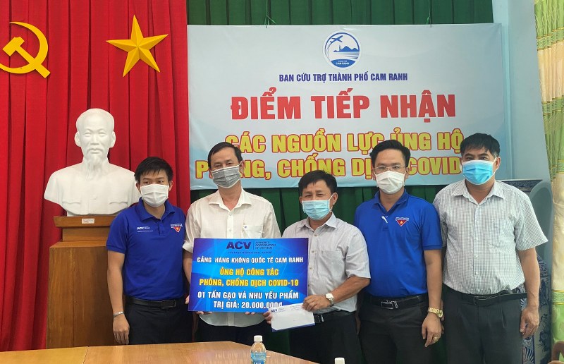 Hưởng ứng lời kêu gọi của Ủy ban Mặt trận Tổ quốc Việt Nam thành phố, sáng 05/8/2021, tại Ủy ban Mặt trận Tổ quốc Việt Nam thành phố Cam Ranh, Ban Cứu trợ Covid-19 thành phố đã tiếp nhận 01 tấn gạo và các nhu yếu phẩm, với tổng trị giá 20 triệu đồng của Cảng hàng không Quốc tế Cam Ranh trao tặng.