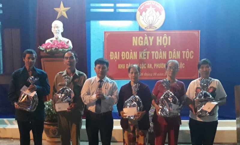 Nhân dịp này, Ủy ban MTTQ Việt Nam thành phố Cam Ranh đã tặng 05 xuất quà (tổng trị giá 2,5 triệu đồng) cho 05 hộ có hoàn cảnh khó khăn trên địa bàn; Khu dân cư Lộc An đã biểu dương 18 hộ gia đình văn hóa tiêu biểu và vận động mạnh thường quân tặng 60kg gạo cho 05 hộ khó khăn.