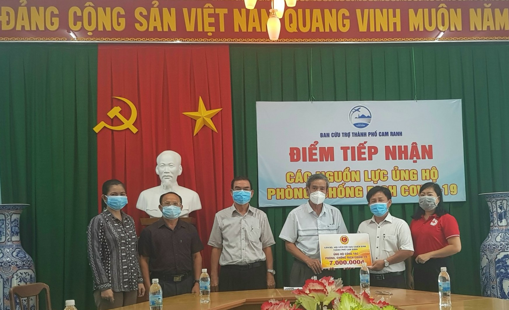 Hưởng ứng lời kêu gọi của Ủy ban MTTQ thành phố, chiều 24/8/2021 Ban Cứu trợ Covid-19 thành phố đã tiếp nhận của cán bộ, hội viên Hội Cựu chiến binh thành phố 7.000.000 đồng và tiếp nhận của Công ty TNHH Cam Ranh Computer (Địa chỉ 306 Đại lộ Hùng Vương, phường Ba Ngòi) 08 thùng nước mắm, 07 thùng dầu ăn, với tổng trị giá trên 5.000.000 đồng ủng hộ cho công tác phòng, chống dịch Covid-19 ở địa phương.