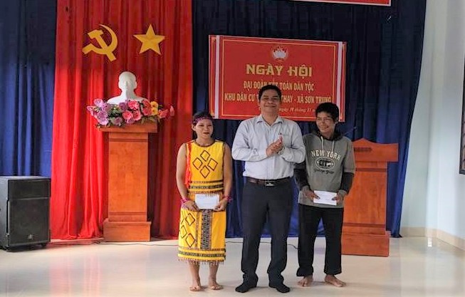Nhân dịp này, ông Cao Minh Khánh đã trao tặng 4 suất quà, mỗi suất 10 triệu đồng (Kinh phí của BTV huyện ủy hỗ trợ) cho các hộ nghèo nuôi bò sinh sản phát triển kinh tế của thôn Chi Chay, xã Sơn Trung huyện Khánh Sơn, trong Ngày hội Đại đoàn kết toàn dân tộc.
