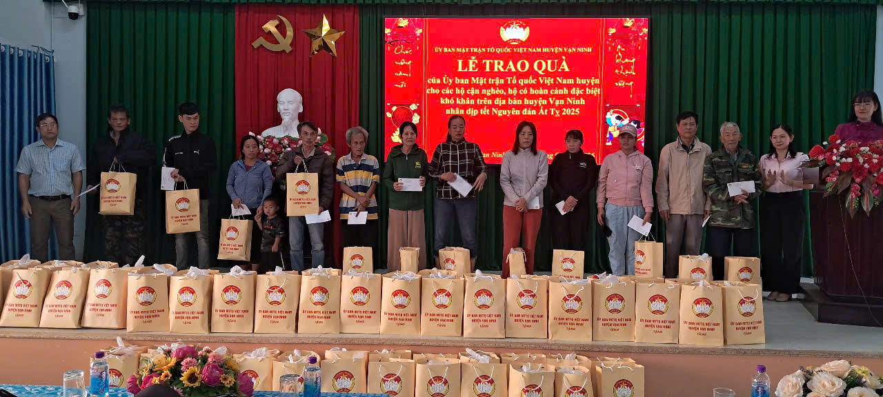 Nằm trong chương trình trao quà tết XUÂN YÊU THƯƠNG Ất Tỵ năm 2025. Từ ngày 04/01/2025 đến ngày 20/01/2025. Ủy ban MTTQ Việt Nam Thị trấn Vạn Giã phối hợp cùng với các Nhà hảo tâm, Mạnh Thường quân. (như Nhóm Thiện nguyện trái tim Việt thành Phố Hồ Chí Minh; Ngân hàng Viêtcombank; Ngân hàng Agribank; Đại lý thức ăn Tôm Hồng Nhận; Tập đoàn Liên Thái Bình Dương; nguồn Tổ Đại biểu HĐND tỉnh Khánh Hòa; nguồn Quỹ người nghèo UBMTTQ Việt Nam tỉnh và Huyện và Liên Đoàn Lao động huyện Vạn Ninh). Qua đó, tổ chức CHƯƠNG TRÌNH TẾT ẤM CHO NGƯỜI NGHÈO trao quà tết cho Hộ nghèo, Hộ Cận nghèo và các hộ có hoàn cảnh đặc biệt khó khăn trên địa bàn thị trấn Vạn Giã, huyện Vạn Ninh. Nhằm kết nối các nhà hảo tâm, Mạnh thường quân với tấm lòng nhân ái và chia sẻ với người có hoàn cảnh đặc biệt khó khăn trên địa bàn Thị trấn hiểu nhau hơn qua câu "Nhiễu điều phủ lấy giá gương, người trong một nước phải thương nhau cùng". Nói một cách khác và thực tế hơn là "Một nắm khi đói bằng một gói khi no" đó là nét đẹp truyền thống của người Việt Nam không phải dân tộc nào cũng có, yêu thương người có hoàn cảnh khó khăn trong cuộc sống, giúp đỡ chia sẻ người khi gặp trắc trở khó khăn, hoạn nạn lúc sa cơ lỡ vận.