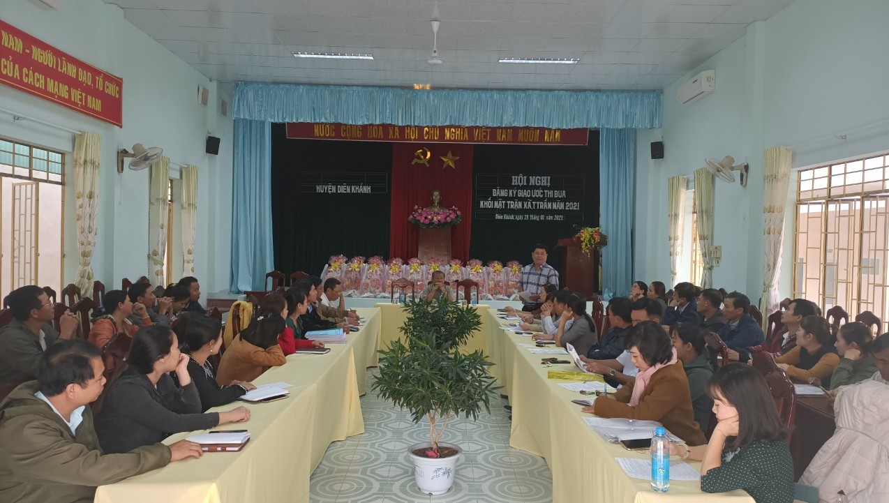 Năm 2021, căn cứ hướng dẫn nội dung thi đua của Ủy ban MTTQ Việt Nam huyện, 02 khối thi đua đã tập trung thảo luận, bàn bạc và thống nhất những nội dung đăng ký thi đua, quy chế thi đua của Mặt trận các xã, thị trấn. Qua đó, hội nghị tiến hành ký kết giao ước thi đua giữa Mặt trận các xã, thị trấn với Mặt trận huyện.