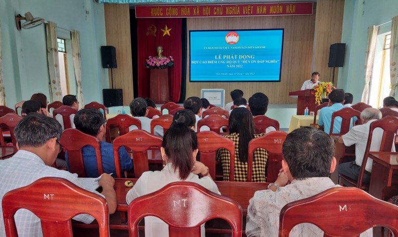 Thời gian phát động đợt cao điểm ủng hộ Quỹ “Đền ơn đáp nghĩa” huyện Diên Khánh bắt đầu từ ngày 07/7/2022 và sau lễ phát động sẽ tiếp tục nhận sự đóng góp của các cơ quan, tổ chức, đơn vị, các doanh nghiệp, các nhà hảo tâm và các tầng lớp nhân dân trong huyện.