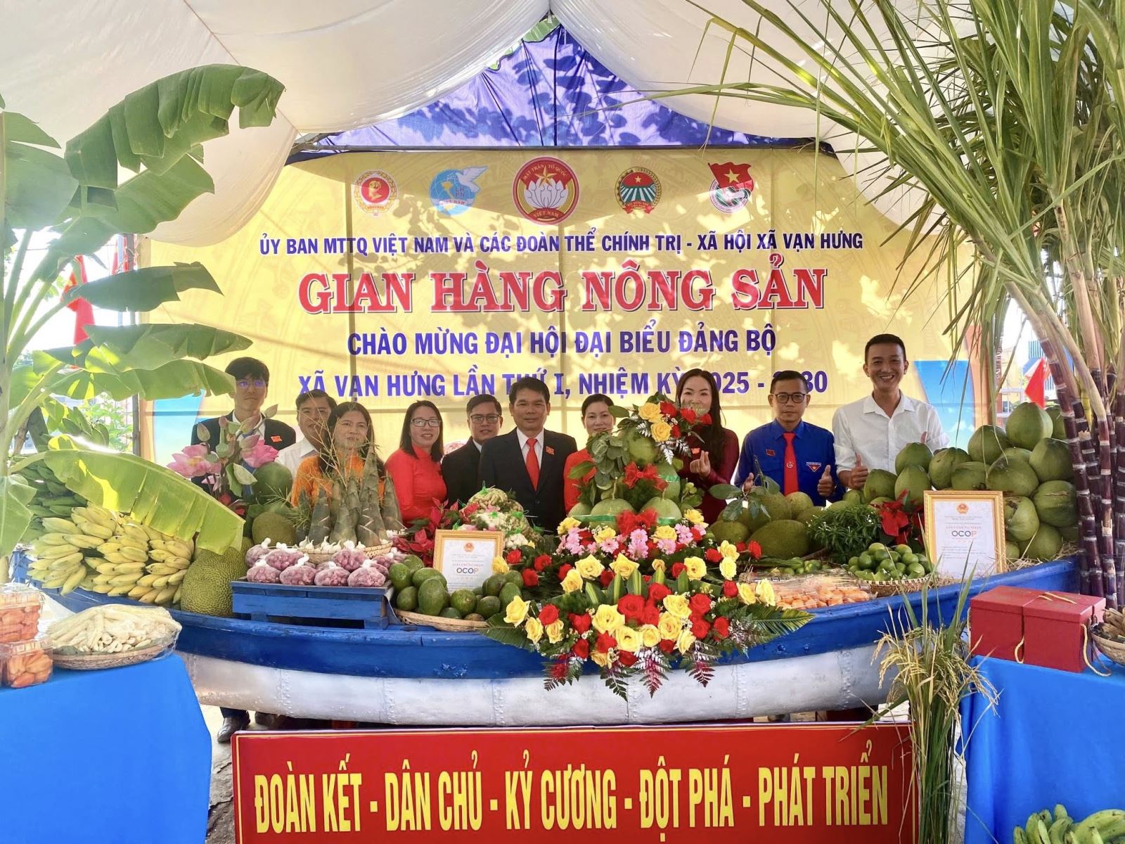 Gian hàng đã thu hút sự tham gia tích cực của Hội Nông dân, Hội Liên hiệp Phụ nữ, Hội Cựu chiến binh, Đoàn Thanh niên cùng nhiều hội viên, đoàn viên và bà con nhân dân. Các sản phẩm được trưng bày phong phú, đa dạng, mang đậm dấu ấn quê hương Vạn Hưng như: rau củ quả sạch, hải sản khô, các loại mắm truyền thống, sản phẩm từ dừa, đậu phộng, cùng nhiều đặc sản chế biến thủ công của hội viên, đoàn viên.