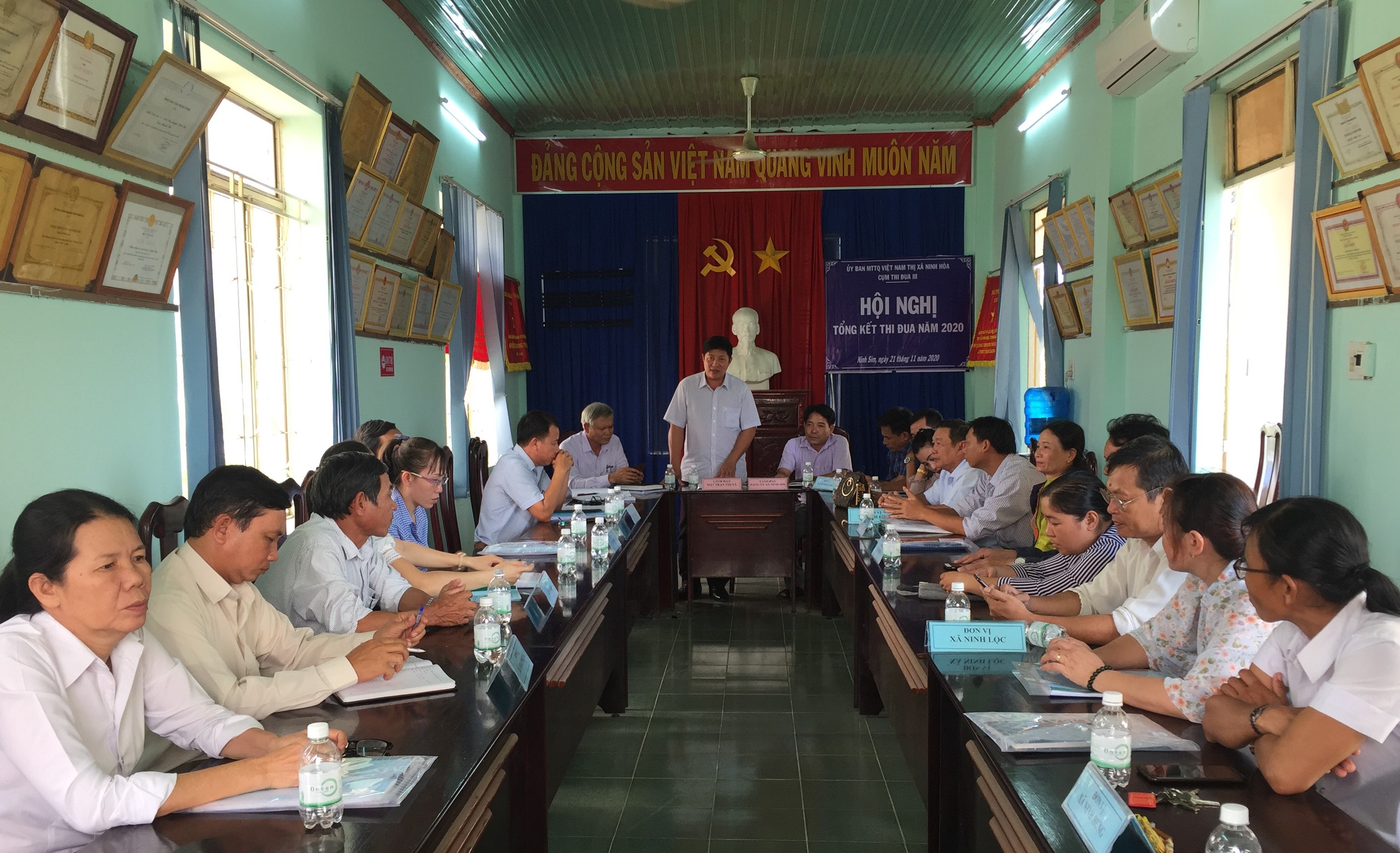 Nhằm đánh giá, xếp loại thi đua công tác Mặt trận cho các Ủy ban MTTQ Việt Nam 27 xã, phường trên địa bàn thị xã Ninh Hòa, Ủy ban MTTQ Việt Nam thị xã đã chỉ đạo Cụm trưởng của 03 Cụm thi đua trong hệ thống Mặt trận cơ sở tổ chức Hội nghị tổng kết thi đua năm 2020.