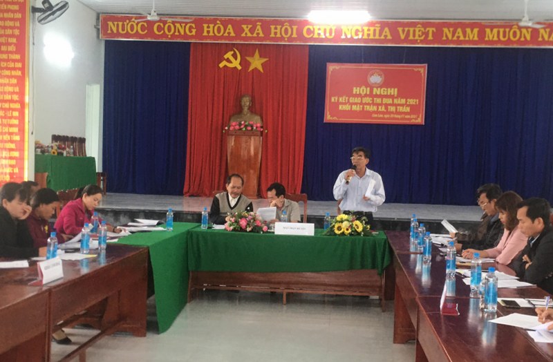 Với sự chứng kiến của Ban Thường trực Ủy ban MTTQ huyện, 02 Khối thi đua xã, thị trần gồm khối Cánh Bắc: Ủy ban MTTQ 7 xã (Suối Cát, Suối Tân, Sơn Tân, Cam Tân, Cam Hòa, Cam Hải Tây, Cam Hải Đông) do Uỷ ban MTTQ Việt Nam xã Cam Hải Đông làm khối trưởng; khối Cánh Nam gồm Ủy ban MTTQ 07 xã, thị trấn (Cam Đức, Cam Thành Bắc, Cam Hiệp Bắc, Cam Hiệp Nam, Cam An Bắc, Cam An Nam, Cam Phước Tây) do Ủy ban MTTQ Việt Nam xã Cam Hiệp Bắc làm khối trưởng đã tiến hành ký kết giao ước thi đua với quyết tâm phấn đấu hoàn thành xuất sắc các nội dung giao ước thi đua năm 2021.