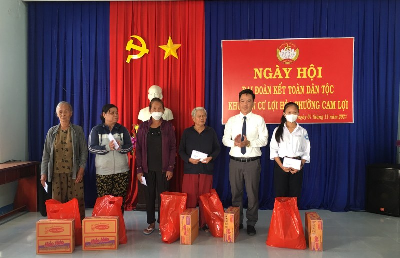 Tại Ngày hội, thay mặt Đảng ủy - HĐND - UBND - UBMTTQ Việt Nam Phường Cam Lợi, đồng chí Cao Nho Trí, trao 05 xuất quà cho người dân tại khu dân cư Lợi Hòa là hộ nghèo, hộ cận nghèo, hộ khó khăn trong cuộc sống, trị giá 2.000.000đ từ nguồn quỹ vì người nghèo.