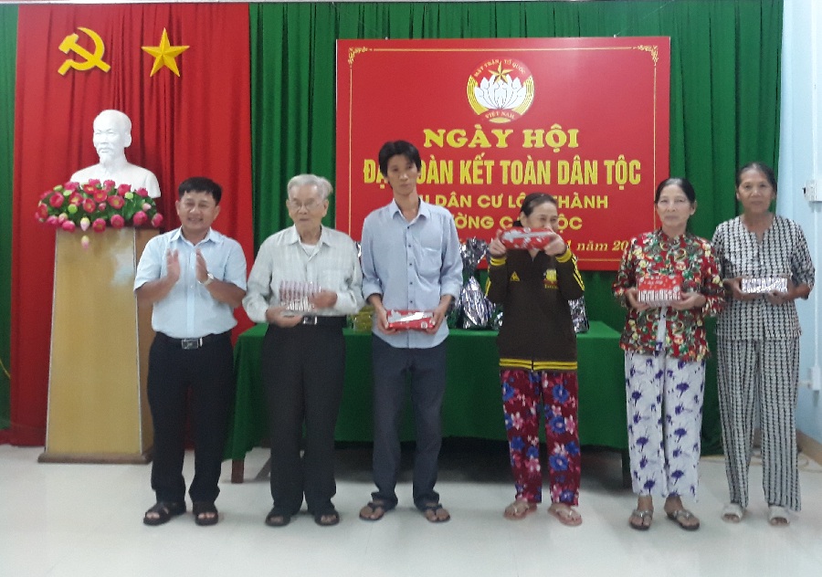 Nhân dịp này, UBMT thành phố và UBMT phường tặng 08 xuất quà (tổng trị giá 3.500.000 đồng) cho 08 hộ gia đình có hoàn cảnh khó khăn trên địa bàn; Khu dân cư Lộc Thành cũng đã biểu dương 19 hộ gia đình có đóng góp tích cực trong thực hiện Cuộc vận động tại Khu dân cư và khen thưởng 06 cháu học sinh thi đỗ vào các Trường Đại học chính quy trên cả nước.