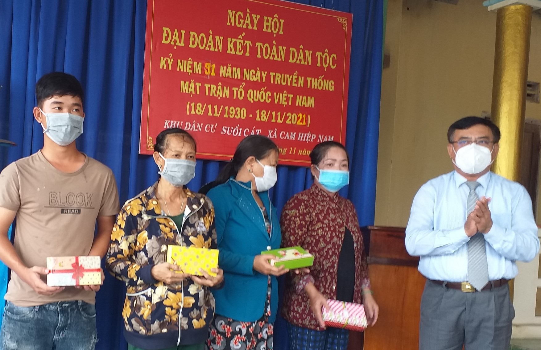 Ngày 14,15,16/11/2021, 03 khu dân cư Suối Cát, Quảng Đức, Vĩnh Thái tổ chức Ngày hội Đại đoàn kết toàn dân tộc nhân kỷ niệm 91 năm Ngày thành lập Mặt trận Tổ quốc Việt Nam. Về dự lễ hội tại khu dân cư Suối cát có ông Phan Đình Phùng - Phó Bí thư Thường trực huyện ủy, Chủ tịch HĐND huyện Cam Lâm và lãnh đạo Đảng ủy, HĐND, UBND, MTTQ xã Cam Hiệp Nam.