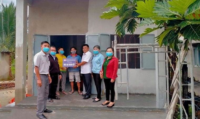 Ông Phan Văn Hưng (thứ ba, bên phải qua) bàn giao Nhà Đại đoàn kết cho hộ dân
