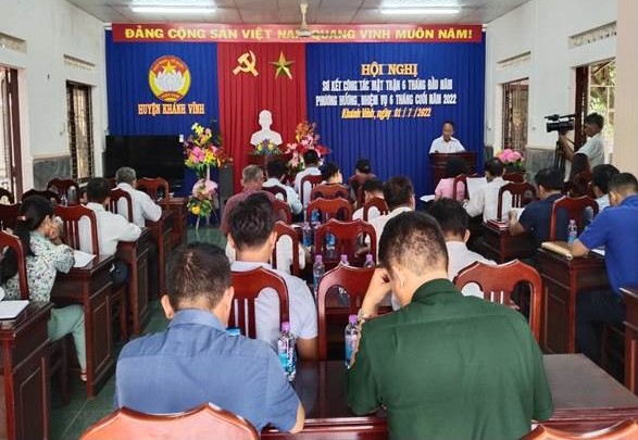 Sáng ngày 01/7, Ủy ban MTTQ Việt Nam huyện Khánh Vĩnh tổ chức hội nghị sơ kết công tác Mặt trận 6 tháng đầu năm, triển khai phương hướng nhiệm vụ 6 tháng cuối năm 2022. Dự và chỉ đạo hội nghị có đồng chí Nguyễn Đức Trí – Phó Bí thư Thường trực Huyện uỷ;các tổ chức thành viên, các cơ quan phối hợp; Văn phòng huyện uỷ, văn phòng HĐND, UBND huyện; các vị Uỷ viên Uỷ ban MTTQ huyện; Chủ tịch Ủy ban MTTQ Việt Nam các xã, thị trấn. Đồng chí Cao Thị Thêm – Ủy viên BTV Huyện ủy, Trưởng Ban Dân vận Huyện ủy, Chủ tịch uỷ ban MTTQ huyện chủ trì hội nghị.