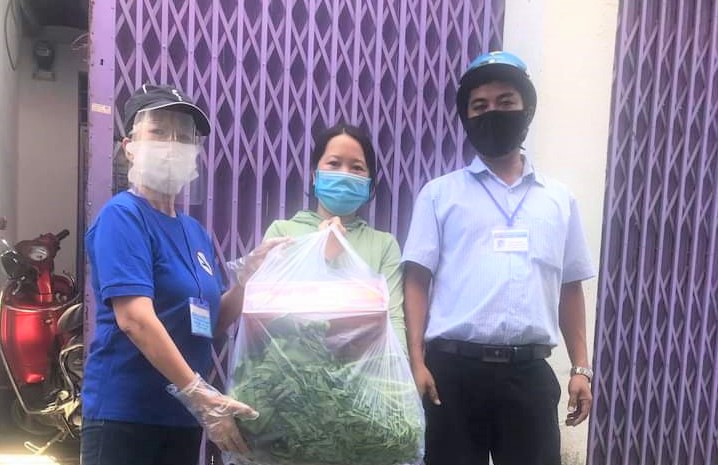 Ông Trần Cao Nguyên – UVBTV, Chủ tịch Mặt trận phường trao lương thục thực phẩm cho ngưòi dân khu vực tổ dân phố máy nước 1