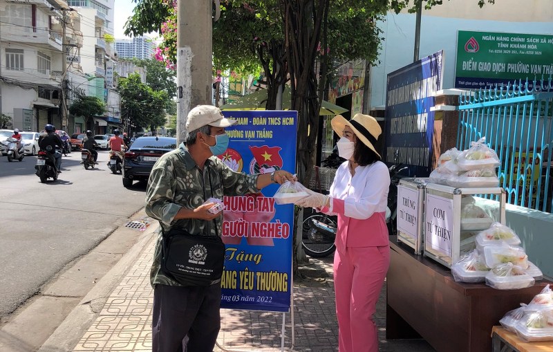 Tiếp nối mô hình Yêu thương và Chia sẻ, hưởng ứng Tháng hành động của Thanh niên, sáng ngày 01/03/2022, Ủy ban MTTQVN phường Vạn Thắng phối hợp với Đoàn Thanh niên phường trao tặng 100 suất cơm với thực đơn “Gà xào sả ớt” cho các gia đình có hoàn cảnh khó khăn, vé số, ve chai , đạp xích lô… nhằm đem lại chút ấm áp động viên những hoàn cảnh khó khăn đang ảnh hưởng dịch Covid 19.