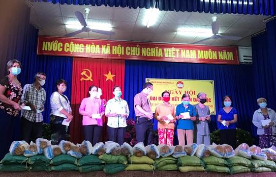 Dịp này, thành phố đã trao tặng 20 phần quà, mỗi suất trị giá 500 ngàn đồng cho 20 hộ gia đình thuộc diện nghèo, khó khăn trong khu phong tỏa, UBND phường trao tặng 30 suất quà, mỗi suất gồm 5 kg gạo, dầu ăn và đường cho 30 hộ khó khăn, mỗi tổ 10 suất.