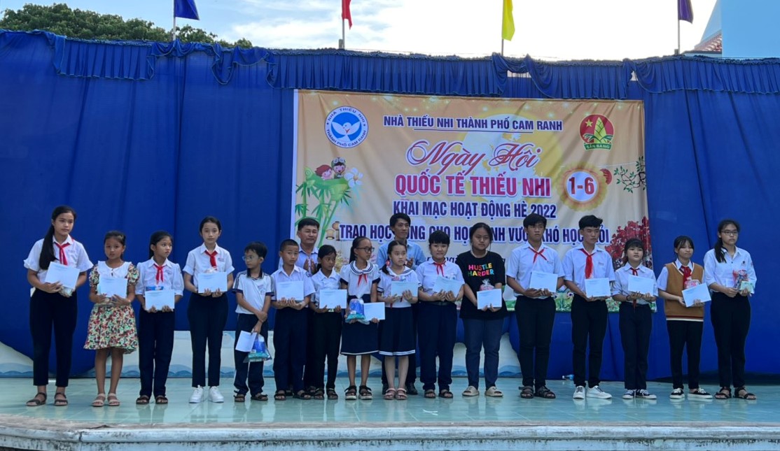 Chiều ngày 01/6/2022, tại Nhà thiếu nhi thành phố Cam Ranh, Ban Thường trực Ủy ban MTTQ Việt Nam thành phố Cam Ranh phối hợp với Hội Hoa lan thành phố tổ chức trao học bổng cho 20 em học sinh có hoàn cảnh gia đình khó khăn, hộ nghèo, hộ cận nghèo nhưng hiếu học, vượt khó, có thành tích xuất sắc trong năm học 2021-2022.