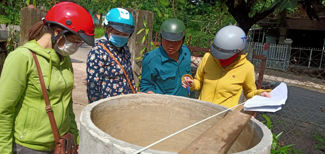 Đoàn công tác kiểm tra các dụng cụ chứa nước tại nhà dân