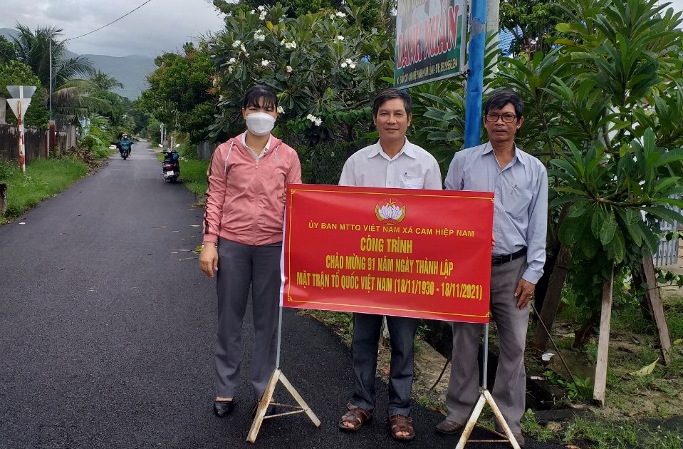 Truyền thống của Mặt trận xã Cam Hiệp Nam, khi mỗi lần có sự kiện chính trị quan trọng như: Đại hội Đảng các cấp, Đại hội Mặt trận các cấp và Bầu cử Quốc hội, HĐND các cấp… là có công trình chào mừng. Năm nay để chào mừng 91 năm Ngày thành lập Mặt trận Tổ quốc Việt Nam (18/11/1930-18/11/2021), khảo sát thực tế các tuyến đường trên địa bàn xã, nhận thấy tuyến đường nhà ông Đào thôn Suối Cát được bê tông xi măng hơn cả chục năm nay. Với lưu lượng xe khá nhiều nên hiện nay, mặt đường còn trơ lại đá lởm chởm với những ổ gà gây nguy hiểm cho người đi xe máy, xe đạp và người đi bộ vì nguy cơ bể lốp xe và đá găm vào chân.