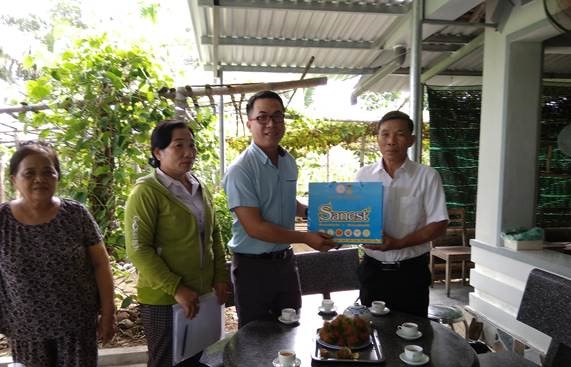 Ông Nguyễn Thắng Anh Minh Bí thư Đảng ủy đại diện trao quà và chúc gia đình luôn mạnh khỏe, hạnh phúc, tiếp tục tuyên truyền vận động con cháu phát huy truyền thống của cha ông trong công cuộc bảo vệ và xây dựng đất nước.