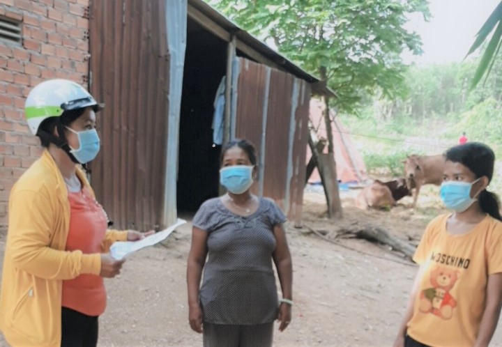 Đồng chí Cao Thị Tuyết Nhung - Chủ tịch UBMT xã Khánh Bình tuyên truyền cách phòng, chống dịch Covid-19 tại khu dân cư
