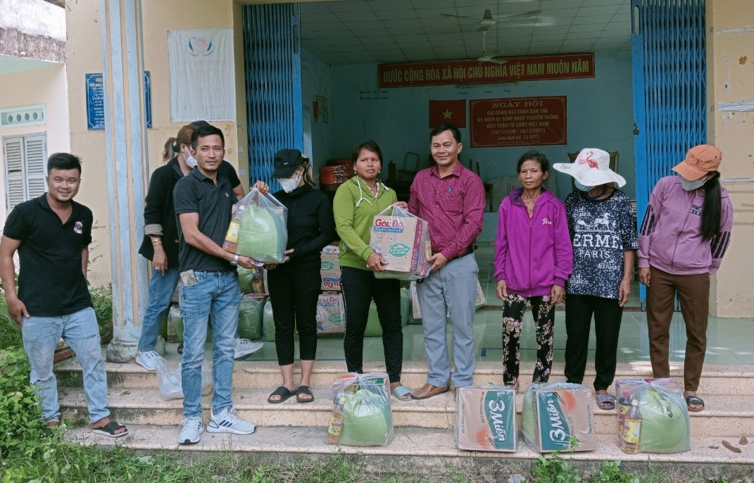 Mặt trận xã và đại diện mạnh thường quân trao quà cho người dân
