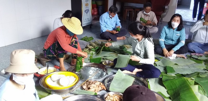 Thực hiện phương châm không để hộ nghèo nào không có Tết, bên cạnh các nguồn hỗ trợ cho người nghèo của Mặt trận xã, ngày 28 và 29/1/2022, Ban Thường Trực Mặt trận phối hợp Hội Liên hiệp Phụ nữ xã Vạn Long vận động kinh phí và huy động lực lượng tham gia gói và trao bánh tét cho 64 hộ nghèo trên địa bàn xã, mỗi hộ được tặng 2 cây bánh.