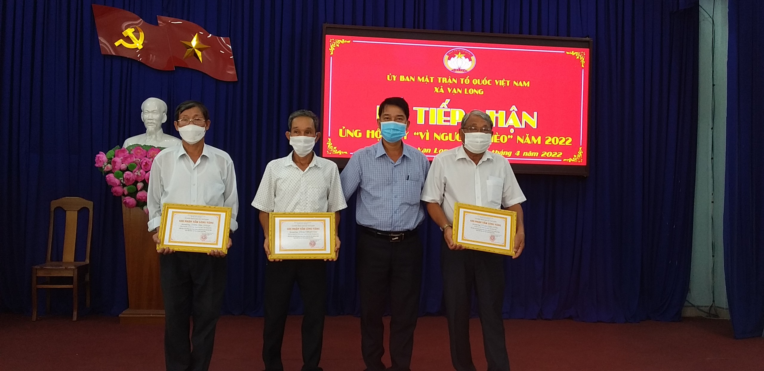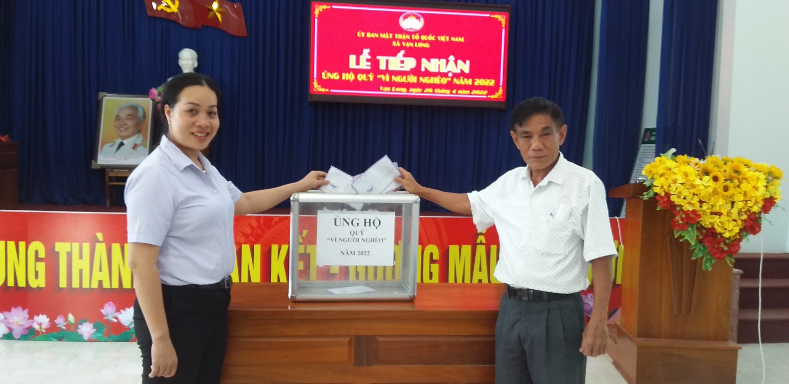 Được sự đồng ý của Đảng ủy - UBND xã Vạn Long, sáng ngày 26-4, Ban thường trực Mặt trận tổ quốc Việt Nam xã Vạn Long tổ chức buổi lễ phát động và tiếp nhận quỹ " Vì người nghèo" năm 2022. Về dự lễ phát động có đồng chí Nguyễn Thị Bé - Phó bí thư thường trực đảng ủy có phát biểu động viên phong trào.