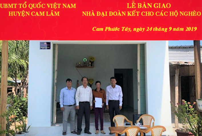 Sáng ngày 24/9/2019, Ủy ban MTTQ Việt Nam huyện Cam Lâm đã tổ chức bàn giao 05 nhà đại đoàn kết cho hộ nghèo xã Cam Phước Tây. Đến dự bàn giao có ông Nguyễn Phước Đàn, Phó Chủ tịch Ủy ban MTTQ Việt Nam huyện Cam Lâm, và các vị trong Ban Thường trực Ủy ban MTTQ Việt Nam huyện, Ủy ban MTTQ Việt Nam và các đoàn thể xã Cam Phước Tây cùng đại diện các gia đình của 05 hộ được nhận hỗ trợ.