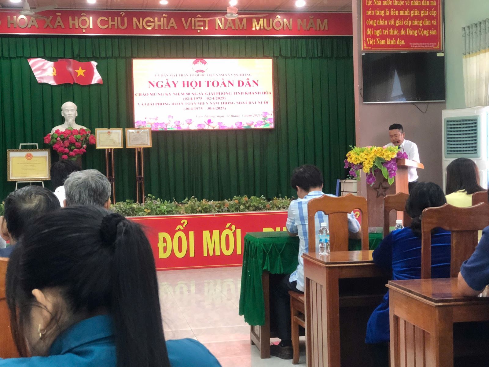 Chiều 31/3 Ủy ban MTTQ Việt Nam xã Vạn Thắng tổ chức ngày hội toàn dân chào mừng kỷ niệm 50 năm giải phóng tỉnh Khánh Hoà (2/4) và 50 năm giải phóng hoàn toàn miền Nam thống nhất đất nước (30/4)