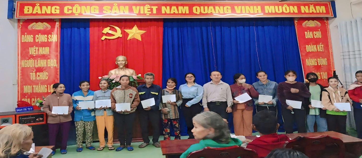 Nguồn từ Quỹ vì người nghèo tỉnh chuyển về Quỹ vì người nghèo huyện hỗ trợ 35 suất quà với trị giá 21.000.000 đồng. (Trong đó: 600.000 đồng/suất quà bằng tiền mặt).