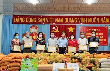 Dịp này, Ủy ban Mặt trận phường Phước Hải đã khen thưởng 9 tập thể 14 cá nhân có nhiều đóng góp trong công tác phòng chống dịch Covid-19, trao 5 phương tiện sinh kế là 5 chiếc xe đạp trị giá 8,5 triệu đồng cho 5 hộ gia đình khó khăn, hỗ trợ kinh phí và vật tư sửa chữa nhà cho 1 hộ cận nghèo và 1 hộ khó khăn, số tiền trên 17 triệu đồng, đồng thời trao tặng cho mỗi gia đình 1 phần quà gồm 10 kg gạo. Cũng nhân dịp này, Hội Chữ thập đỏ phường đã tiếp nhận 140 suất quà từ Hội chữ thập đỏ thành phố trao tặng cho 140 hộ gia đình có hoàn cảnh khó khăn tại địa phương, mỗi suất trị giá 200 ngàn đồng.