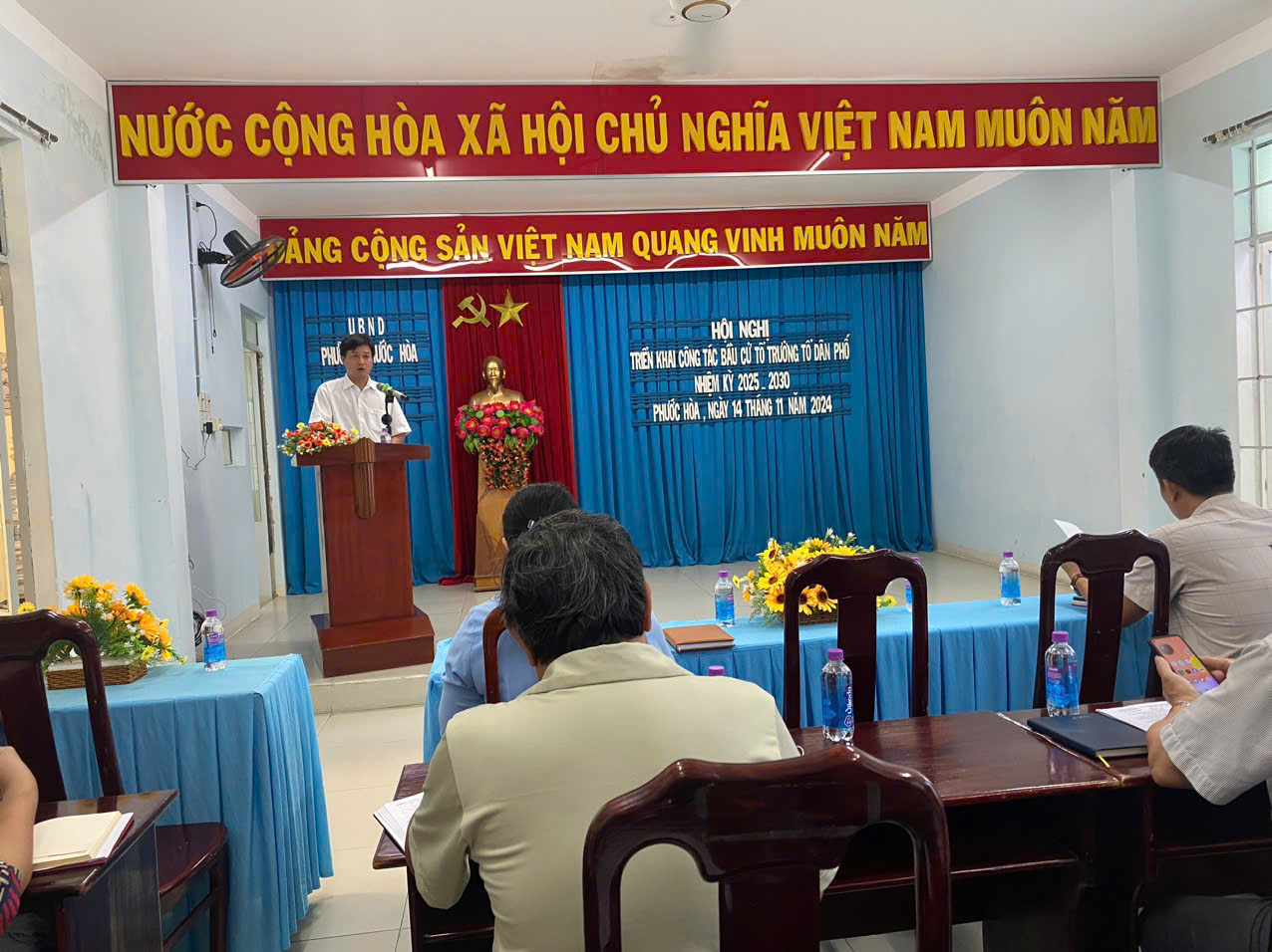 Sáng ngày 14/11 UBND phường Phước Hòa tổ chức hội nghị triển khai công tác bầu cử Tổ trưởng tổ dân phố nhiệm kỳ 2025-2030 cho các thành viên Ban chỉ đạo bầu cử, Bí thư chi bộ, Trưởng Ban công tác Mặt tận, Tổ trưởng các tổ dân phố trên địa bàn.