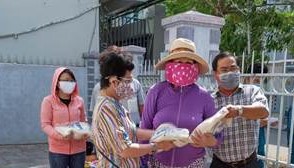Ủy ban MTTQ Việt Nam phối hợp phát gạo cho người dân